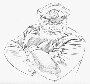 The weather was nice now, and Doc was out on the driver’s side running board, the wind blasting through his hair, his mighty arms holding tight. He wore a white safari shirt with epaulets on the shoulders, khaki cargo pants, and leather boots. Over his shirt he wore his field vest, brown and full of pockets holding numerous useful tools and gizmos he always took with him on his travels.